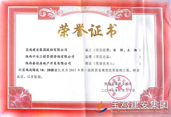 2018年1月26日從陜西省建筑業(yè)協(xié)會傳來喜訊,由寶雞建安集團股份有限公司負責施工的“科技研發(fā)樓工程”(五項目部)、“泰森?千禧時代商業(yè)綜合體”(六項目部)、“寶雞尚錦苑1#、2#樓”、“寶雞尚錦苑3#、4#、5#、6#樓及地下車庫”及“太白縣城市綜合體項目—酒店及球館工程”(路橋項目部)被陜西省建筑業(yè)協(xié)會評為2017年第二批陜西省優(yōu)質(zhì)結(jié)構(gòu)工程獎。 通過本次獲獎,各項目部能夠依據(jù)項目創(chuàng)優(yōu)要求和相關(guān)法律法規(guī)開展質(zhì)量創(chuàng)優(yōu)工作,對現(xiàn)場原材料、檢驗批、分部、分項工程及功能性設(shè)施進行質(zhì)量管理,做好“三檢”工作,切實履行了質(zhì)量管理職責。在施工過程中,公司加強對項目實體質(zhì)量和資料的檢查監(jiān)督,推行質(zhì)量標準化,確保了每一項工程都能順利驗收通過。 希望各項目部在2018年應夠繼續(xù)加強現(xiàn)場質(zhì)量意識,提升項目質(zhì)量管理水平。質(zhì)量部也將繼續(xù)總結(jié)獲獎工程的典型引路和示范作用經(jīng)驗,強化工程建設(shè)質(zhì)量管理,多出精品,推動公司總體水平穩(wěn)步提高。