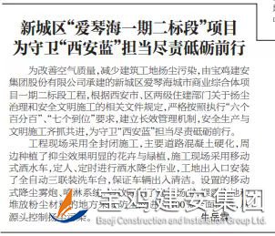 為改善空氣質(zhì)量,減少建筑工地?fù)P塵污染,由寶雞建安集團(tuán)股份有限公司承建的新城區(qū)愛琴海城市商業(yè)綜合體項(xiàng)目一期二標(biāo)段工程,根據(jù)西安市、區(qū)兩級住建部門關(guān)于揚(yáng)塵治理和安全文明施工的相關(guān)文件規(guī)定,嚴(yán)格按照執(zhí)行“六個(gè)百分百”、“七個(gè)到位”要求,建立長效管理機(jī)制,安全生產(chǎn)與文明施工齊抓共進(jìn),為守衛(wèi)“西安藍(lán)”擔(dān)當(dāng)盡責(zé)砥礪前行。