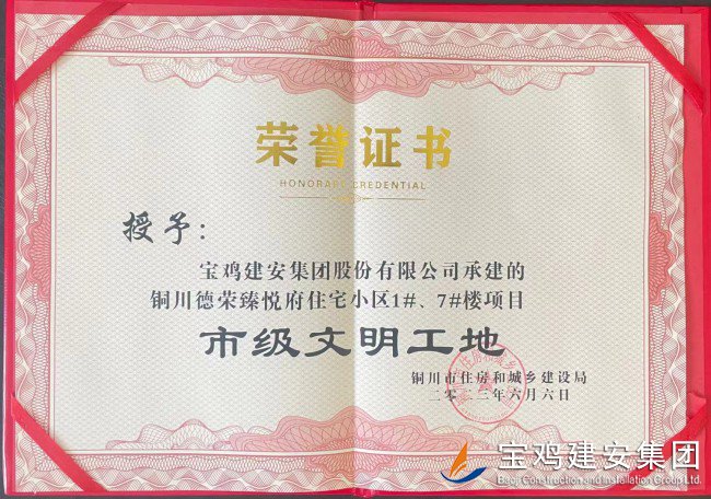 與此同時,由寶雞建安集團(tuán)第四分公司承建的銅川新區(qū)德榮臻悅府小區(qū)項目(距雍照華府項目5公里),也在此次活動中,被授予“銅川市文明工地“榮譽(yù)稱號。