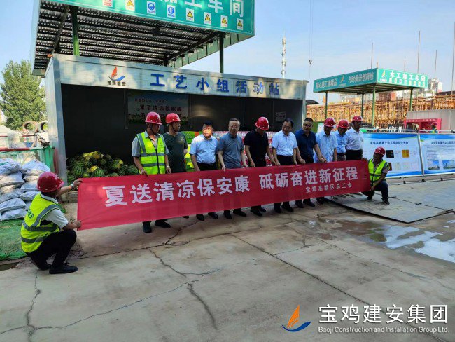 7月18日上午,寶雞高新區(qū)管委會黨工委委員、管委會副主任楊海翔,高新區(qū)總工會主席李廣強,區(qū)教育系統(tǒng)黨委書記、教育體育局局長唐宏,副局長劉輝等一行領(lǐng)導,前往建安集團承建的寶雞高新第三幼兒園建設項目工地,走訪慰問一線員工,開展“夏送清涼”活動。