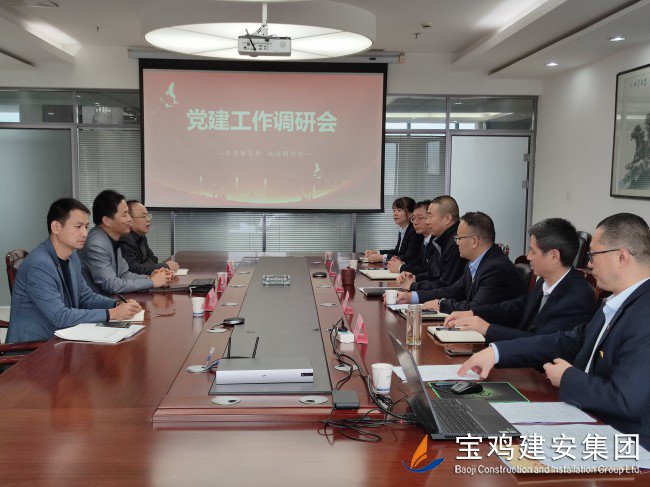 10月19日上午,市住建局黨組專(zhuān)職副書(shū)記馬平科,人教科科長(zhǎng)李泉、副科長(zhǎng)陳發(fā)平一行前往寶雞建安集團(tuán)公司調(diào)研指導(dǎo)主題教育開(kāi)展及“四強(qiáng)”非公企業(yè)黨組織建設(shè)等情況。集團(tuán)公司黨委書(shū)記、董事長(zhǎng)、總經(jīng)理景常榮,黨委副書(shū)記胥永寧,黨委副書(shū)記、紀(jì)委書(shū)記侯少偉和部分黨委委員及基層黨支部書(shū)記參加了調(diào)研活動(dòng)。