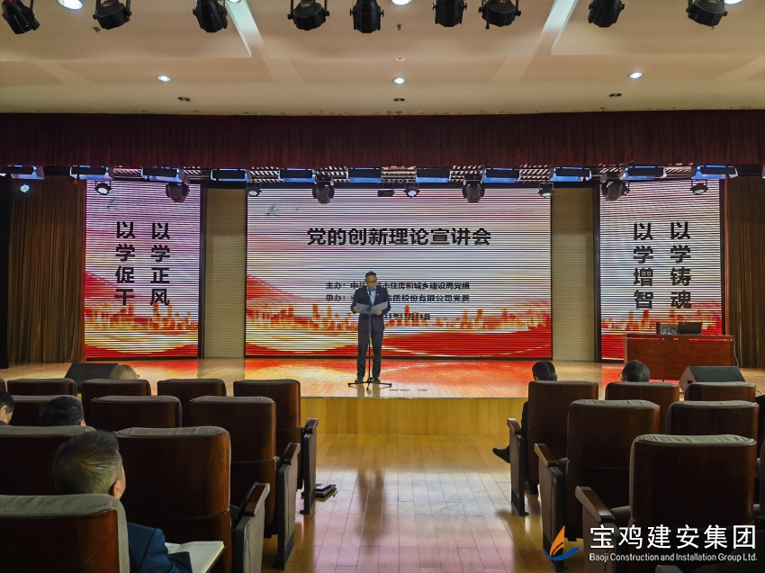 為認真學習貫徹習近平新時代中國特色社會主義思想和黨的二十大精神,扎實深入推進主題教育。11月28日下午,在寶雞建安集團股份有限公司24樓多功能廳舉辦了一場“學習貫徹講話精神、著力推動高質量發(fā)展”黨的創(chuàng)新理論宣講會。本次宣講會由中共寶雞市住房和城鄉(xiāng)建設局黨組主辦,寶雞建安集團股份有限公司黨委承辦,局機關和局屬27個企事業(yè)單位200多名黨員干部參加了宣講會。 寶雞建安集團公司黨委副書記胥永寧在致詞中,感謝局黨組對寶雞建安集團公司的信任和大力支持,介紹了公司經(jīng)營生產(chǎn)情況和黨建工作開展情況,并邀請局系統(tǒng)各兄弟單位蒞臨指導,加強學習交流,共同拓展工作思路,促進各項工作更上一層樓。
