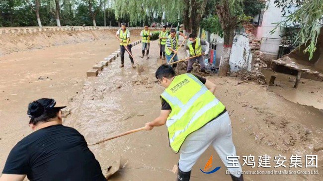 在這場沒有硝煙的災(zāi)后重建狙擊戰(zhàn)中,寶雞建安集團19日接到市、區(qū)兩級住建部門的通知后,第一時間就成立了由公司主要領(lǐng)導(dǎo)牽頭的清淤搶險小組。奔赴一線的志愿號召一經(jīng)發(fā)出,60多位熱血青年熱烈響應(yīng),大家踴躍報名、積極參與,迅速組建起隊伍,截至目前,已連續(xù)投入高強度勞作達四個工作日。