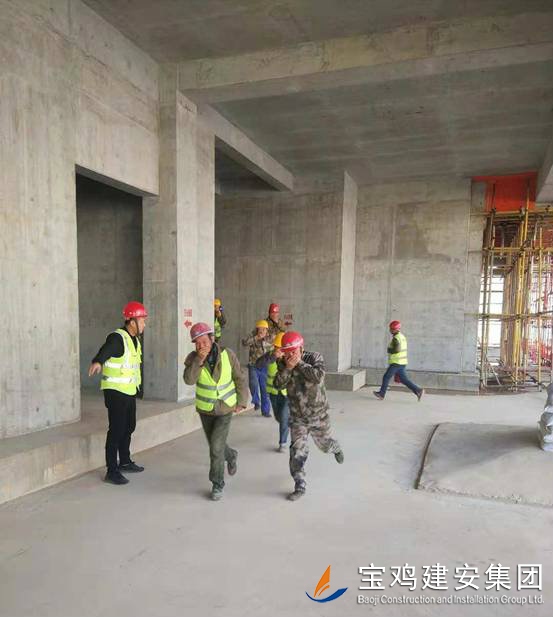建筑施工現(xiàn)場的安全防范一直是建筑行業(yè)工作的重點(diǎn),冬季施工消防工作更是重中之重,為切實(shí)加強(qiáng)施工現(xiàn)場消防安全教育,提高施工現(xiàn)場各單位應(yīng)急救援小組應(yīng)對火災(zāi)危險(xiǎn)的應(yīng)急處置能力,積累應(yīng)急組織、人員疏散、消防救助等實(shí)戰(zhàn)經(jīng)驗(yàn),切實(shí)做好施工現(xiàn)場的安全工作。2018年11月21日下午在寶雞建安集團(tuán)公司承建的泰森?億佳苑項(xiàng)目施工現(xiàn)場舉行了一場消防應(yīng)急疏散演習(xí)。本次活動由寶雞建安集團(tuán)股份有限公司、陜西中安工程咨詢管理有限公司、陜西泰森房地產(chǎn)開發(fā)有限公司聯(lián)合組織演習(xí)。施工現(xiàn)場100多人參加了本次演習(xí)活動,學(xué)習(xí)到處置火災(zāi)危險(xiǎn)的應(yīng)急方法,達(dá)到了演習(xí)目的。 演習(xí)活動前,寶雞建安集團(tuán)公司安全部經(jīng)理何偉,科員符鵬、張震及寶雞建安集團(tuán)公司第六項(xiàng)目部應(yīng)急救援小組組長邵哲明、周潔組織項(xiàng)目部應(yīng)急救援小組成員針對施工人員火場逃生、救援疏散等事項(xiàng),精心設(shè)計(jì)了消防演習(xí)方案,并就施工現(xiàn)場消防設(shè)施的分布,以及火災(zāi)發(fā)生時(shí)應(yīng)該注意的事項(xiàng)進(jìn)行了說明。